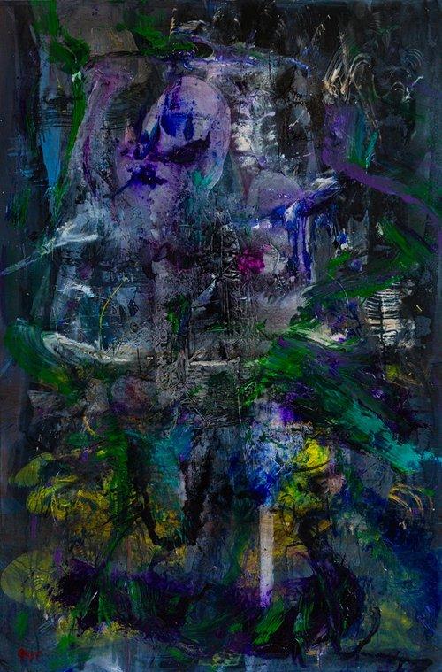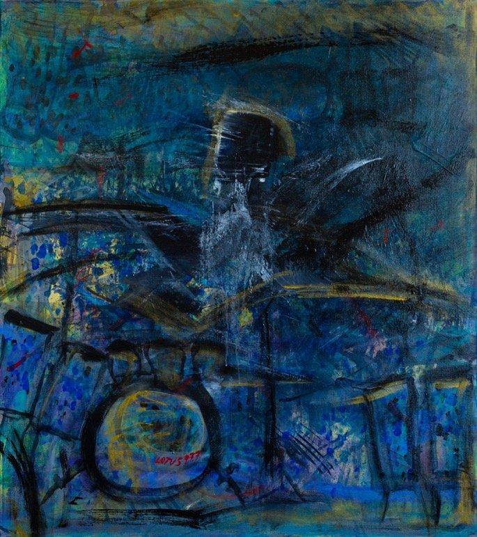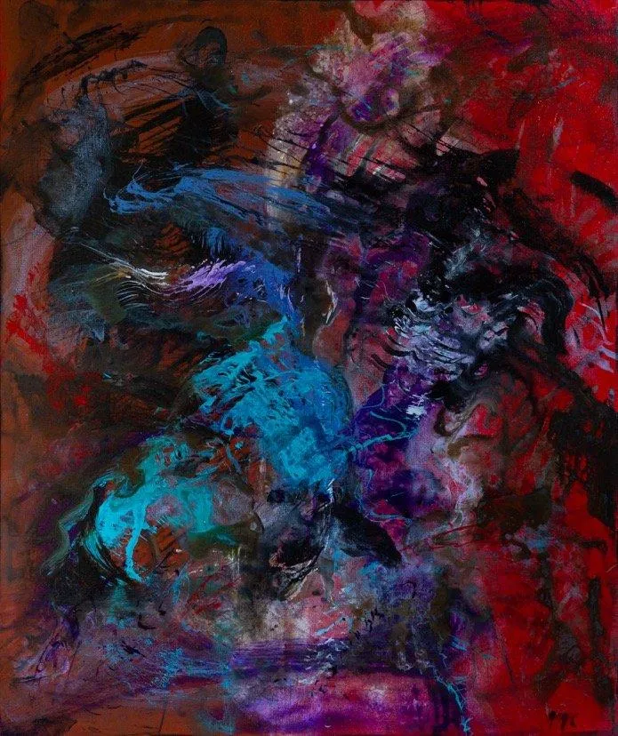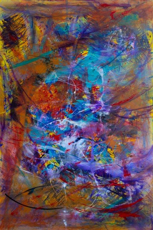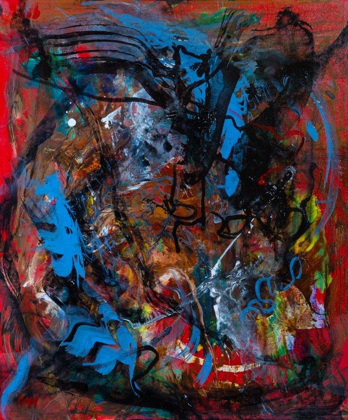 The incredible relationship between music and art has always played a significant role in the creation of my work. Side Eye NYC is a recent work by guitarist Pat Metheny. One piece in particular titled Lodger, became a mantra in the studio. The music is a dialogue of movement, feeling and gesture. In some ways it birthed a gateway to an exploding kaleidoscope of the unknown drawing in a spontaneous desire to simply fly through the music like a heartbeat. The excitement of reaching a mystical syncopation unpacking an adventure, releasing the darkness hidden in all things possible.